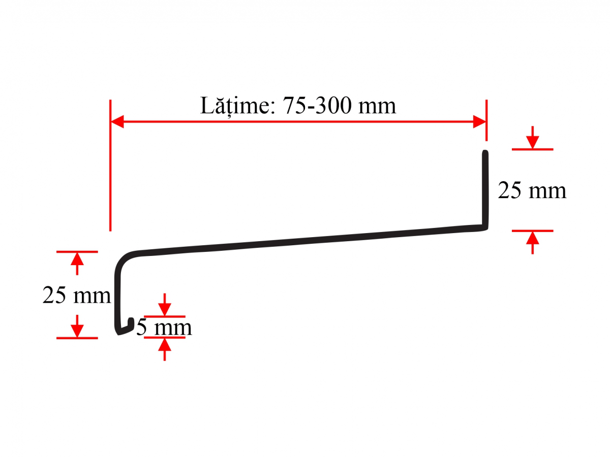 - Lățime: 75 mm, 105 mm, 135 mm, 150 mm, 150 mm, 165 mm, 180 mm, 195 mm, 210 mm, 225 mm, 240 mm, 260 mm, 280 mm, 300 mm, 320 mm;