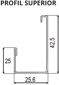 - Dimensiuni profil superior: 42,5 x 25 x 19,4 mm;
